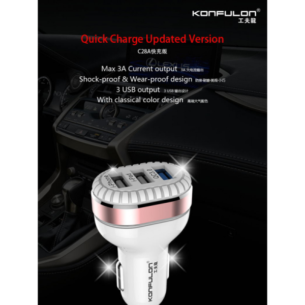 Auto punjac KONFULON C28A 3xUSB QC 3.0 18W
