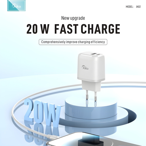 Kucni punjac KONFULON JK82 + PX15 PD 20W, QC 18W, sa kablom USB na Type C beli